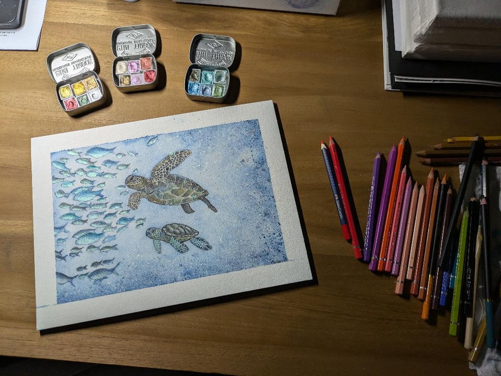 Mes œuvres racontent des histoires sur la nature, la biodiversité et la neurodiversité. Je peints à l'aide de crayons aquarellables avec des palettes de couleurs douces et poétiques.