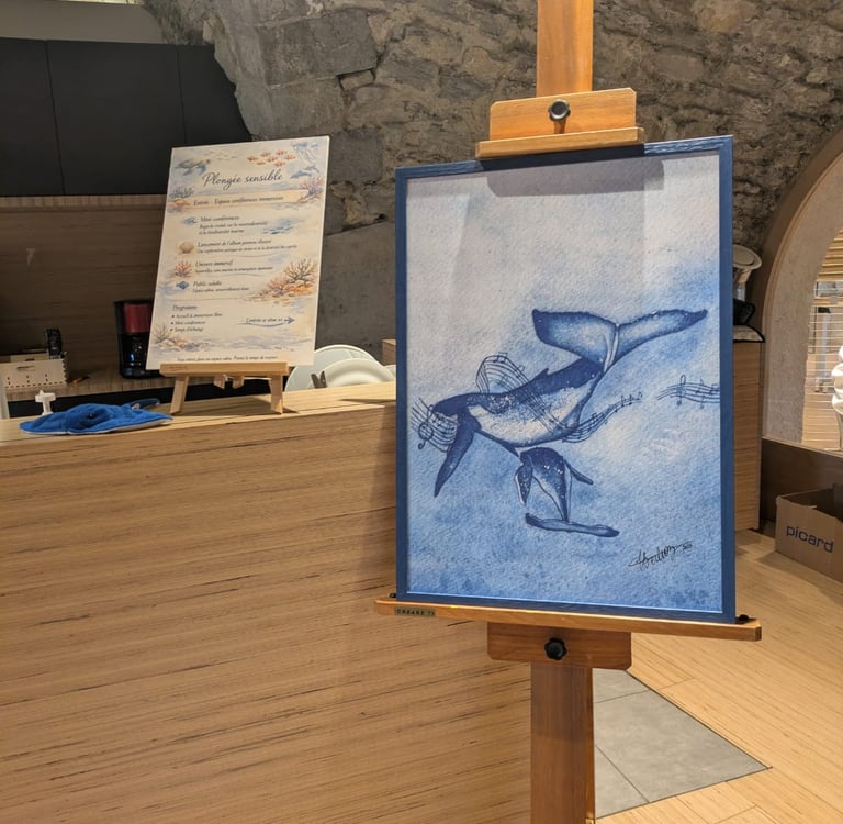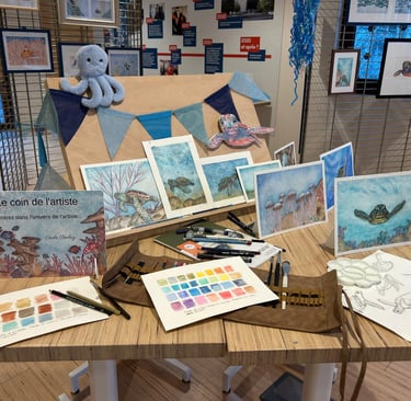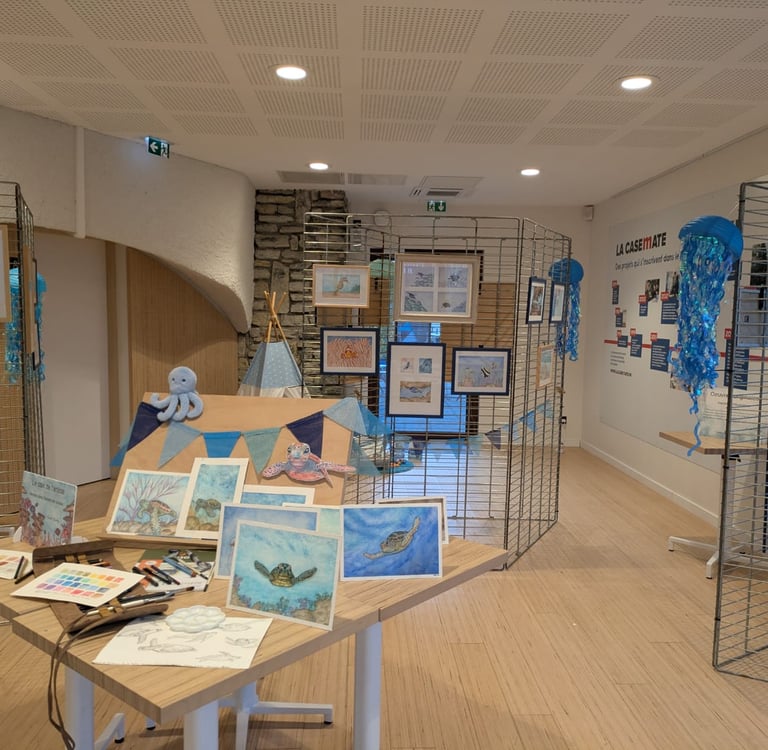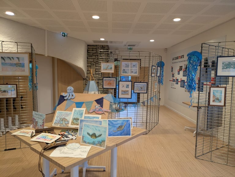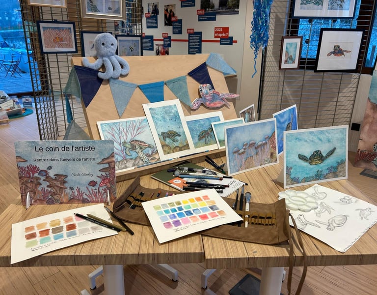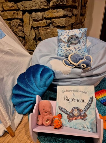 Dès votre arrivée, plongez dans une ambiance marine apaisante. Découvrez le « Coin Récif », un espace de lecture démonstratif conçu pour être « neuro-amical » (modèle reproductible en classe ou chez soi).